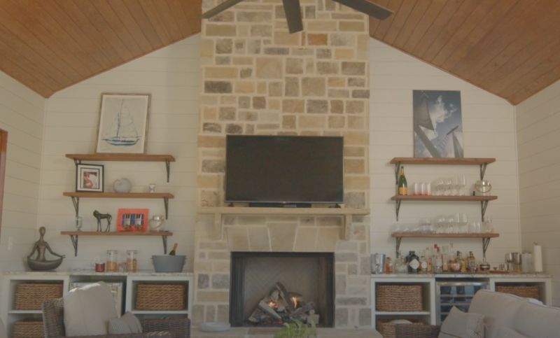 Grace: For me, I love being around water. I like seeing it, I like hearing it. I think it’s calming, but it’s also a great entertaining space. And we use it year ‘round, because we’ll have the pool heated. We can go out here for coffee in the morning or have friends over late at night. We use the fireplace and the electric heaters in the middle of winter, and so we spend a lot of time in the pool house. It’s been fun.