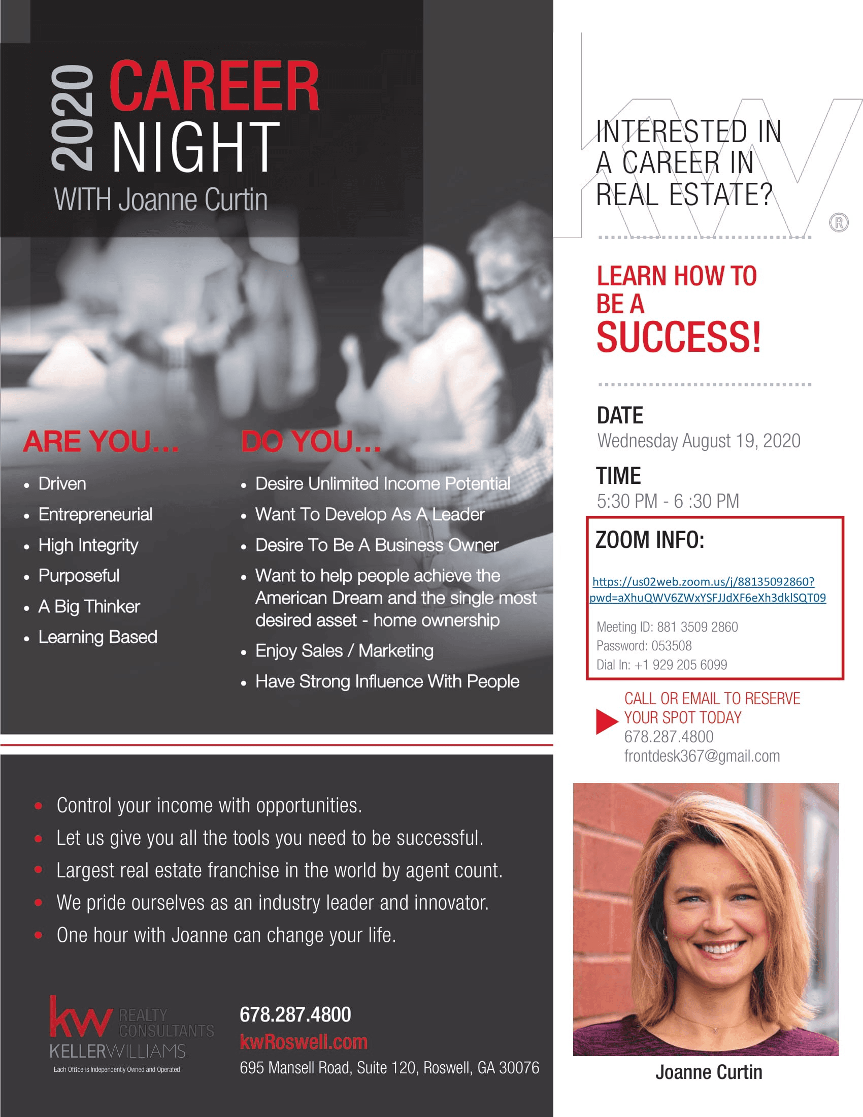 * Are You an existing agent looking to revitalize your real estate business and take it to the next level? Join Joanne online on Zoom. If you are unable to attend, email us and we will let you know about the next opportunity.