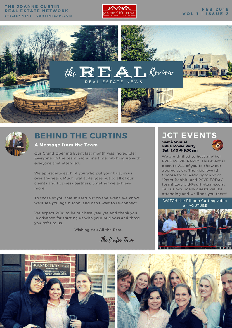 Hey Everyone! Can you believe that we’re already into the second month of 2018? The Curtin Team had an awesome kickoff in January to commemorate the new Team office on Canton Street. Many of our clients, partners , family, and friends came out to celebrate with us. We also enjoyed the company of Lori Henry, Mayor of Roswell. If you missed out on the fun, you can watch the Ribbon Cutting event by clicking on the image below.